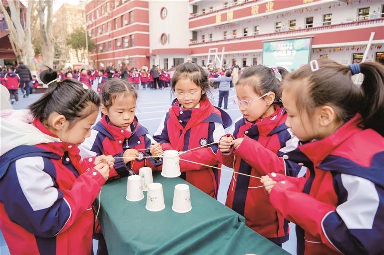 陜西師范大學(xué)雁塔第二實驗小學(xué)的“樂游文化園,勇闖智慧關(guān)”是一年級孩子們的一場奇妙之旅。學(xué)生們穿梭于“漢字拼音童趣園”“智慧思維探索園”“非遺童趣巧手園”等八大文化主題園,在拼讀、計算、觀察、歌唱、繪畫、運動中展示所學(xué)。