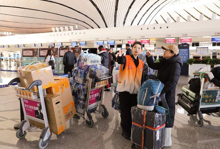 2日一早,余先生一家來到北京大興國際機場,準備搭乘南航CZ8995航班前往阿勒泰滑雪。“不僅可以攜帶雪具出行,機場還開放了雪具托運專用值機柜臺,服務很貼心。”余先生說。